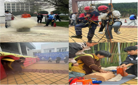此外,活动还设置了模拟逃生区、灭火器体验区、消防保龄球区、急救技能区、绳索逃生救援体验区、预防溺水区以及应急救援装备展示区等多个互动体验环节,让师生们在实践中学习到了宝贵的防灾减灾知识和技能。