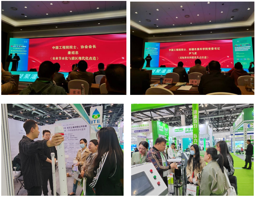 大会主题为“凝聚灌溉智慧,创新节水科技”,包括主题演讲和产品展览。老师们先是聆听了康绍忠院士、尹飞虎院士等专家关于节水灌溉新技术、灌区现代化、智慧水利技术的发展和应用情况等方面的主题演讲,然后到展区参观了智能灌溉、智慧水利、数字农业、智慧灌区等方面的产品。