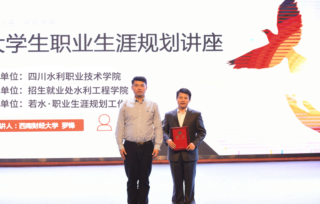 本次讲座特邀西南财经大学罗锋主任担任主讲,若水·职业生涯规划工作室李军主持,水利工程学院总支书记双学珍、副书记吴限出席讲座,水利工程学院大一、大二全体同学参加。讲座开始前,招生就业处副处长张海为罗锋老师颁发导师聘书。