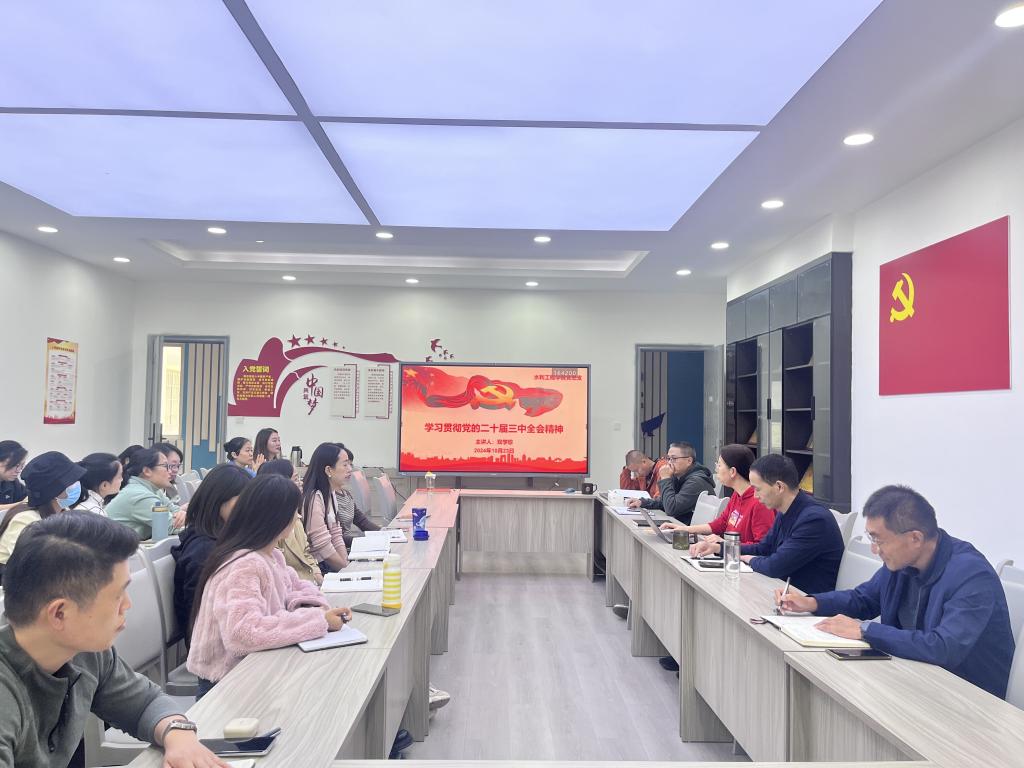 为深入学习贯彻党的二十届三中全会精神,10月23日,水利工程学院党总支在实训楼1226会议室召开支部扩大会专题学习党的二十届三中全会精神。会议由水利工程学院党总支书记双学珍主持,全体教职工参加了本次活动。