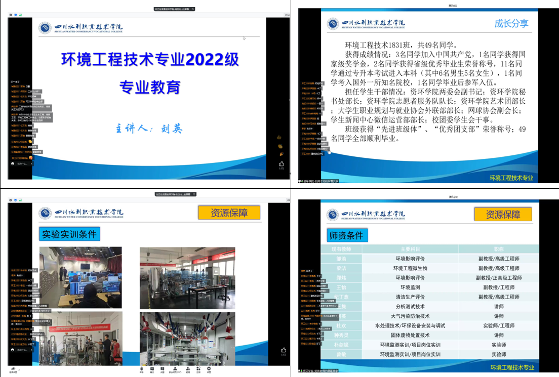 环境监测技术专业带头人梁敏老师以“三年后我们的状态?”为问题,让大家带着对未来的憧憬,开始了专业介绍,从团队组成、专业方向、实训条件、技能证书等方面阐述了选择环境专业的优势。