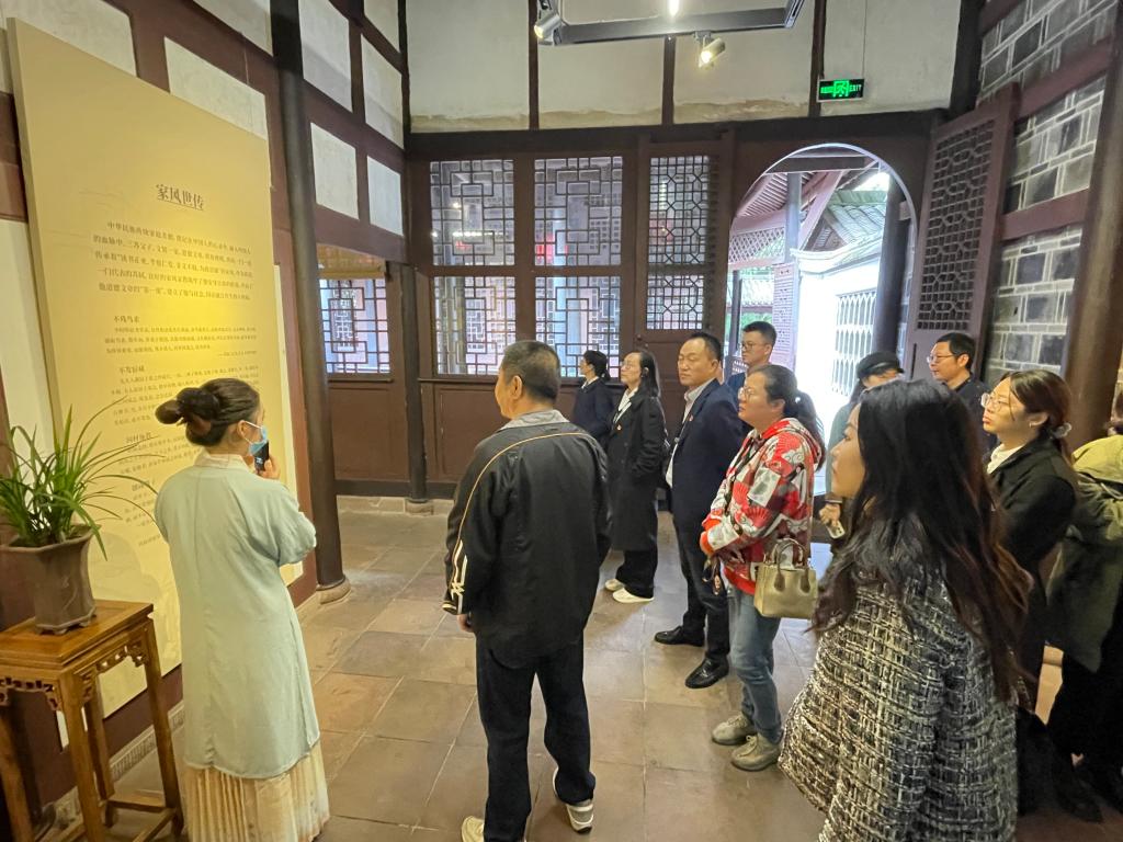 习近平总书记到访三苏祠时提到“一滴水可以见太阳,一个三苏祠可以看出我们中华文化的博大精深。我们说要坚定文化自信,中国有‘三苏’,这就是一个重要例证。”穿越千年,百亩古祠缘何能够映照中华文化?先贤智慧怎样启迪新时代的哲思?在讲解员的带领下,我们走进三苏祠,参观纱縠行、苏宅古井、政贤堂、飨殿、启贤堂、木假山堂、晚香堂·碑廊等,汲取三苏“读书正业、孝慈仁爱、非义不取”的家风精髓,领悟三苏“功废于贪、行成于廉”“言行如一、勇于担当”的良好家风家训,感受“千载诗书城”优秀传统文化的璀璨光芒,感悟三苏文化焕发的强大生命力。通过全程参观,大家对三苏家风有了全面的认识,接受了一次深刻的精神洗礼,更加理解习近平总书记关于敬仰中华优秀传统文化和涵养新时代共产党人良好家风的重要指示精神。