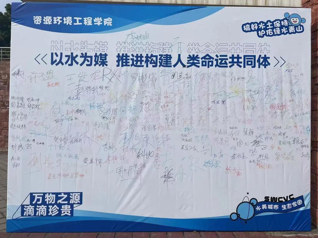 资源环境工程学院联合团委、科研处、教务处在图书馆广场举办了第三十二届“世界水日”水文化科普游园活动,以趣味活动吸引大家积极参与,增强大家保护水资源的深刻认识,将“精打细算用好水资源,从严从细管好水资源”理念深入人心。