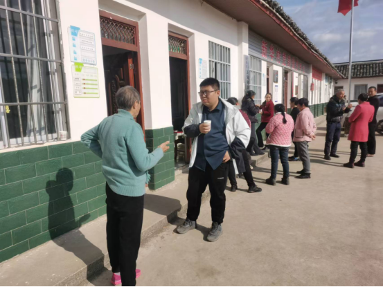 会议间歇农户向姜老师咨询生猪疾病治疗问题