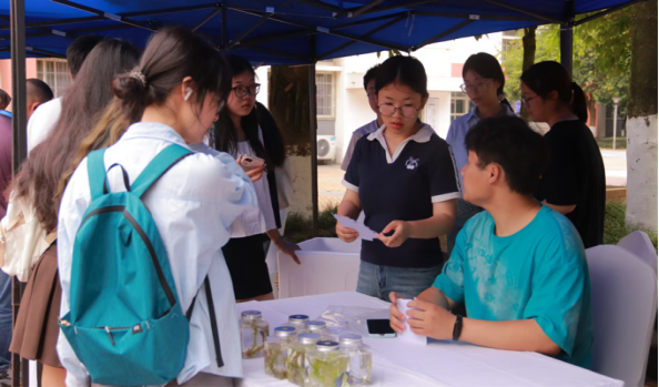 活动现场设置了斗鱼展示区。在养殖成果展示区,透明养殖罐内,灵动的鱼苗与各类水生植物相映成趣,吸引众多师生驻足围观。专业教师与学生志愿者热情地为参观者讲解水产养殖的品种特性、养殖环境要求、日常管理要点等知识。从鱼苗的孵化、幼鱼的培育到成鱼的养殖,详细且生动的讲解让大家对水产养殖流程有了清晰认识。