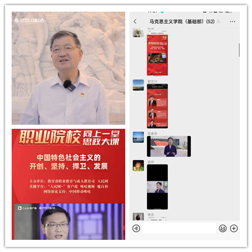 为深入贯彻落实习近平总书记关于“大思政课”和职业教育的重要指示批示,在教学中引导学生充分认识中国特色社会主义的优越性为重点,坚定“四个自信”,厚植爱国情怀,以实际行动迎接党的二十大胜利召开,马克思主义学院全体教师9月17日通过手机、电脑等方式学习收看了“同上一堂思政大课“。