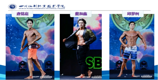 我校健身健美代表队在罗丹和苏冯歌两位老师的指导下,经过2天的精彩角逐,管理工程学院酒店2232班戴和鑫同学凭借扎实的肌肉线条和及其出色的赛场表现力,荣获男子健身模特高职高专组一等奖(亚军),水利2231邱梦柯同学获得男子健体高职高专组二等奖,道桥2132赵层显和水资源2331唐铭崧两位同学获得男子健体高职高专组三等奖。