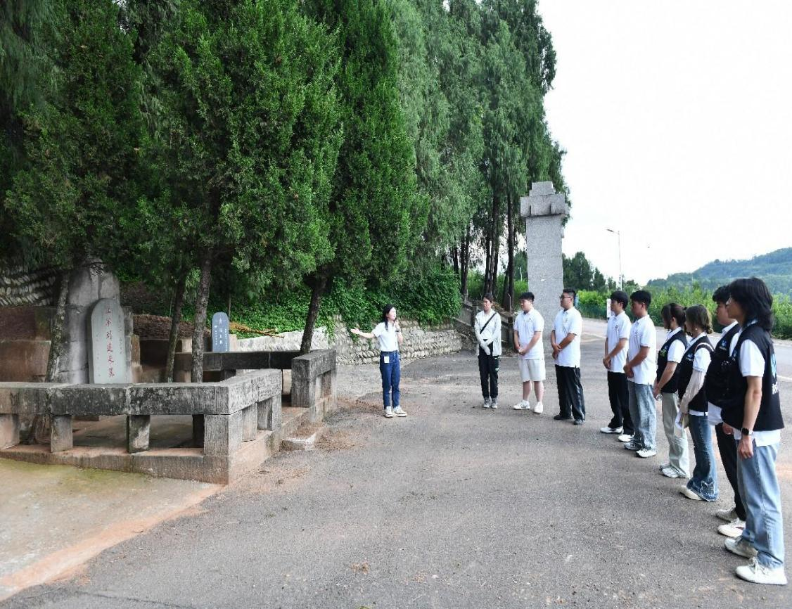 7月9日,小队抵达南部县长坪山红军烈士纪念园,思政教师方琴深情讲述南部县作为“川北盐乡”的红色历史:1933年,红四方面军为解决川陕革命根据地吃盐问题发动仪南战役,攻占长坪山并设指挥部,三进“盐乡”留下诸多红色印记。红军主力撤离后,刘姓连长率6名战士留守,为掩护群众牺牲,年仅25岁。陈韩氏冒死掩埋其遗体,嘱家族世代守墓,此后陈修昆、陈忠民、马全民夫妇先后接力,2016年马全民大女儿冯炼放弃大城市生活,回乡任教并守护英灵,四代人百年坚守传承红色精神。