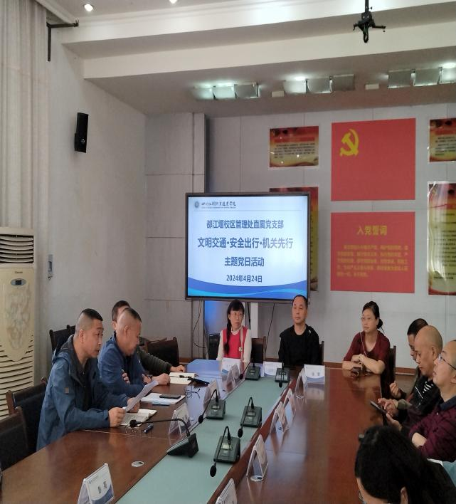 2024年4月24日,按照都江堰市五部门联合发出《关于开展都江堰市“文明交通.安全出行.机关先行”活动的通知》(都直委发〔2024〕2号)和学校安办的工作部署,都江堰校区直属党支部召开支部(扩大)会议暨“文明交通•安全出行•机关先行”主题党日活动。会议由副处长罗强主持,管理处全体党员、教职工和外包公司负责人参加了会议。