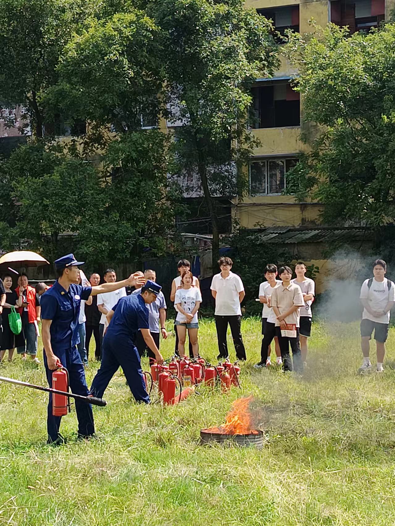 本次演练由校区师生代表和专业消防人员参与,特别邀请了都江堰市消防大队古城区消防中队的专业消防员进行现场指导和观摩。