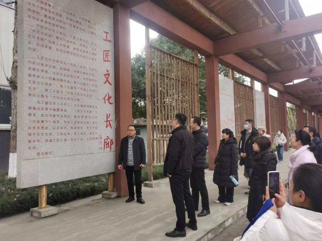 在陪同客人参观校园时,重点介绍了水文化长廊和工匠文化长廊是图书馆参与学校文化建设取得的成果,介绍了两条文化长廊中涉及的重点文献推介。在陪同各位客人参观图书馆馆舍、书库时,重点介绍了新建的“大水堂”水文化认知实训基地、墨染艺术工作坊、竹编艺术工作坊,这是图书馆通过与团委、产教融合部合作,精心打造的传承中华优秀传统文化、水文化的空间。