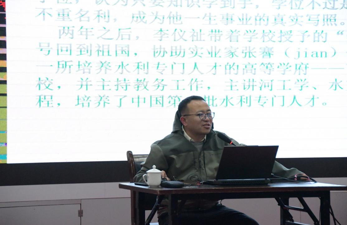 在讲座的最后部分,王老师强调了水利精神的重要性。他指出,水利精神体现了人类与自然和谐共处的理念,是推动水利事业发展的强大动力,正是这种精神激励着新一代的水利人继续发扬优良传统,为水利事业贡献自己的力量。王老师作出呼吁,无论是在学习、工作还是生活中,四川水院人都要始终铭记这种精神,努力将其融入到自己的行动中去,为实现水利事业的可持续发展贡献自己的智慧和力量。