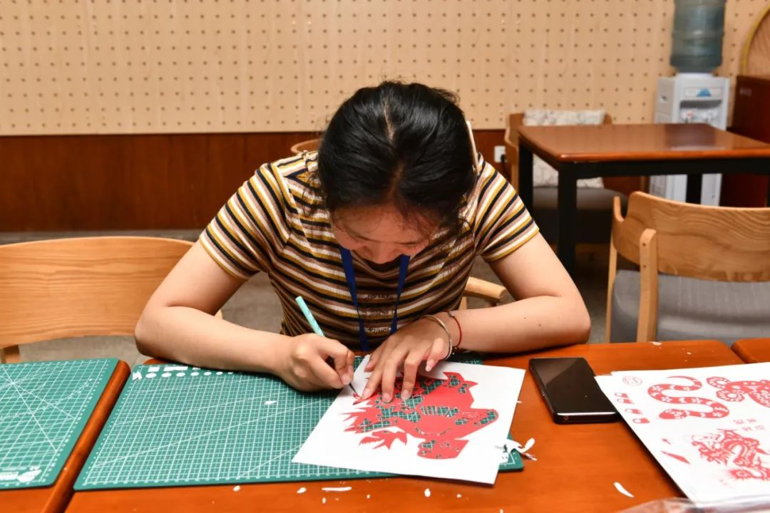 图4 同学们在“剪影世界”打卡点体验非遗工艺——刻纸