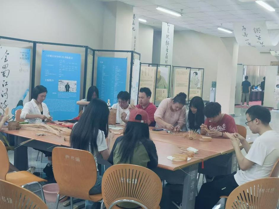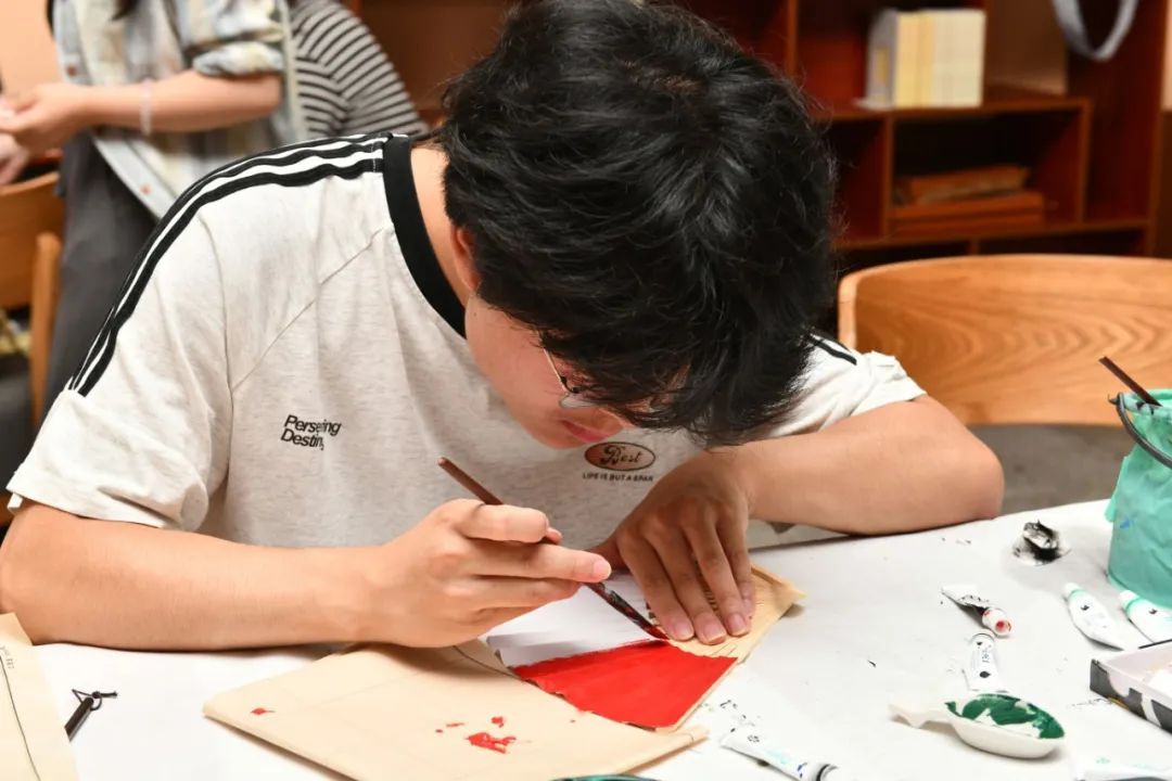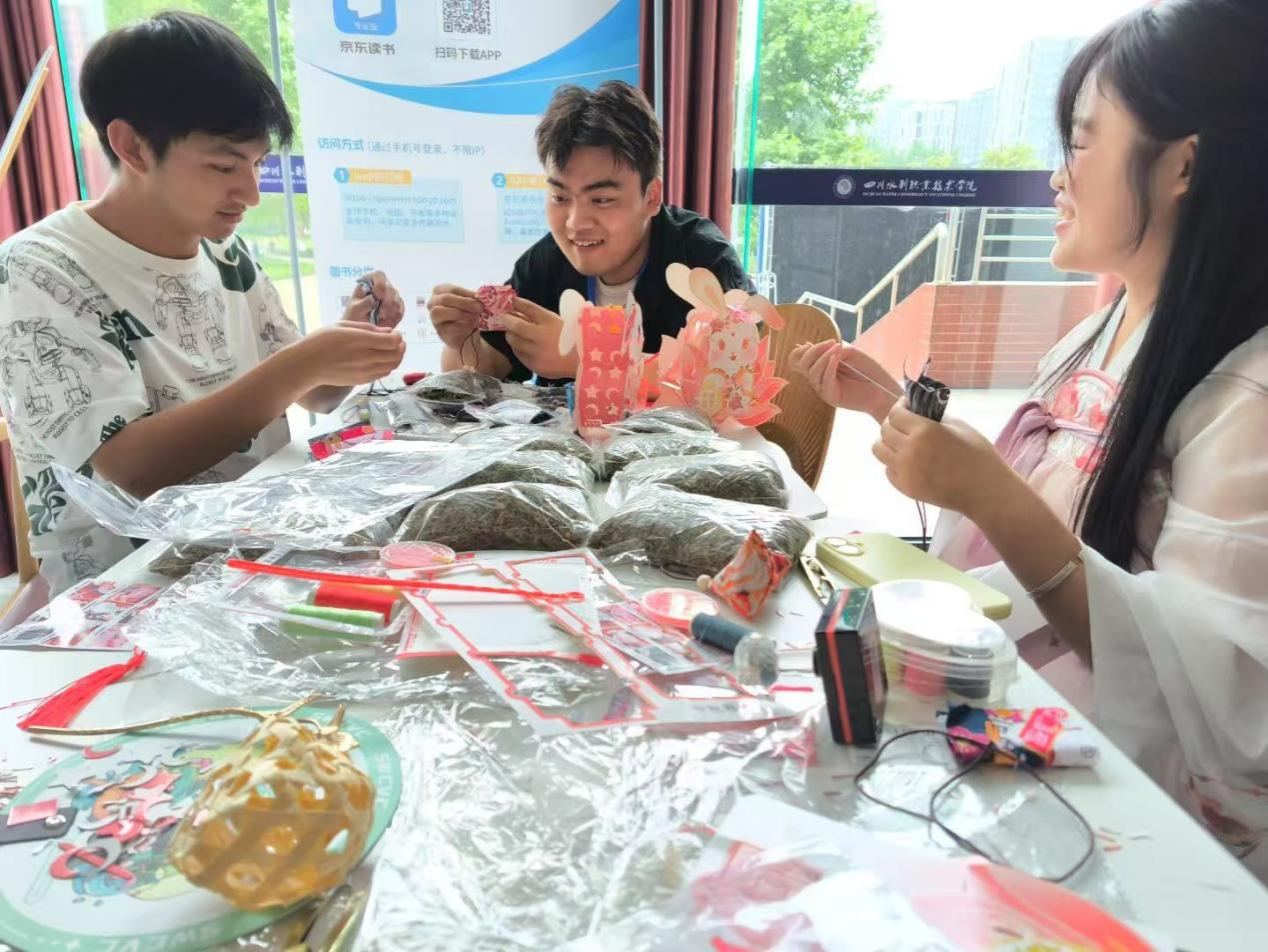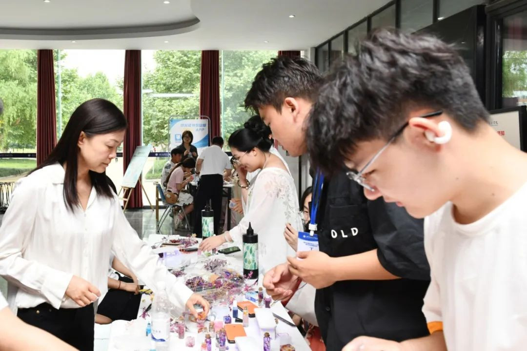 “文脉追踪”与“匠心探秘”以解灯谜的形式,带领参与者追踪文化脉络,探索传统文化底蕴;“剪影世界”和“扇上丹青”让同学们亲手尝试剪纸和扇面绘制,体验传统手工艺;“瞬间永恒”通过凝胶工艺将花朵与颜色融合,创造永恒的艺术作品;“汉韵寻章”和“竹影流韵”两个打卡点的参与者可以亲手制作花灯、端午祈福香囊以及道明竹编,体会非遗手工的乐趣;“言听‘技’从”则帮助参与者提升语言能力文化素养,在轻松愉快的氛围中增进知识。