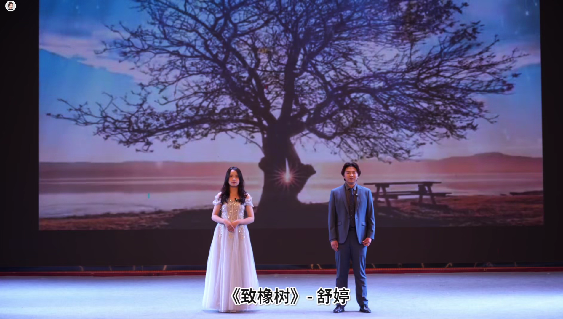 在教师组中,王帆老师凭借出色表现荣获三等奖,一首《拾馒头的父亲》展现了对父亲的深情;郭妍老师和孟晓老师获得优秀奖,她们的作品分别为《心田上的百合花》和《何以华夏 何以中国》。他们以深厚的文化底蕴、精湛的演绎技巧,展现了我校教师在经典传承方面的卓越风采。学生组同样表现亮眼,伍琴同学的作品《雨巷》荣获二等奖,何书豪同学的作品《赤壁赋》、邓新雨同学的作品《木兰辞》分别获得三等奖,陈梓欣、李煜喆同学合作的《致橡树》获得优秀奖。同学们用青春的活力和对经典的独特理解,诠释了中华经典的魅力。